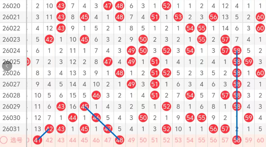 第三区间的走势分析:第三区间上期开出了七个号码球,主要的落号点位在三区间的前后半区,走出了四奇三偶的形态走势,上期三区间的前半区落下了四个号码球,后半区落下了三个号码球,整个三区间处于走热的趋势,根据三区间的走势规律,今天的三区间我们主看前半区斜连码的回补,主看41 48这两个号码球的落位,再看后半区热码58的回补,这三个号球建议大家打个三胆拖,或者打个三码复二比较稳妥,参考为主!