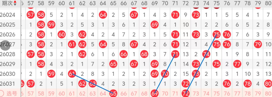 第四区间的走势分析:第四区间上期开出了六个号码球,主要的落号点位在四区间的前后半区,走出了一奇五偶的形态走势,上期四区间的前半区落下了两个号码球,后半区落下了四个号码球,整个四区间处于的趋势,根据四区间的走势规律,今天的四区间我们主看四区间斜连码的落位,前半区主看65这个号码球的落位,再看后半区69 72这两个号码球的落位,特别是72的重码可以重点关注!这三个号球建议大家打个三胆拖,或者打个三码复二比较稳妥,参考为主!