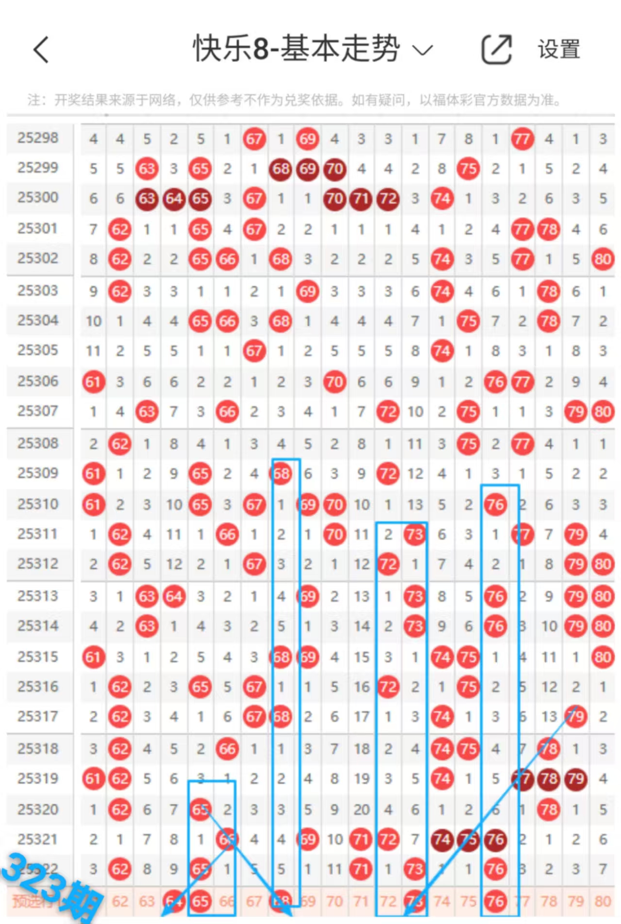 快乐八323期走势分析(本期走势不错+继续跟上吃肉)