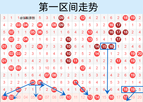 该区间上期做了02号数字,他出了03号,那么本期我们接着在做一下02号数字看看,看看本期能否开出来。连号07 08上期落了08号,那么本期的连号05 06号我们就要注意落号情况了。3重号09和4重号10本期我们要注意回补的情况了,回补一个的机会很大的,连号15 16号已经是遗漏6期另外,本期我们要注意落号情况了。