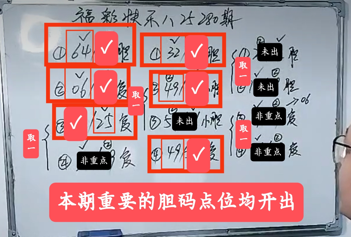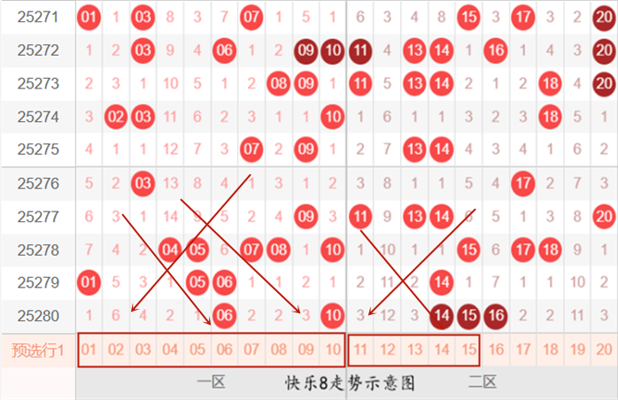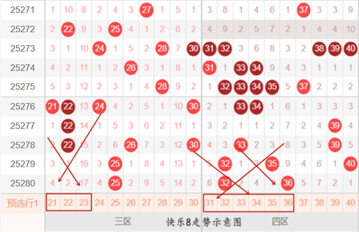 快乐8第25281期:上期重点胆码点位均开出,命中主副双胆、选二、选三中二