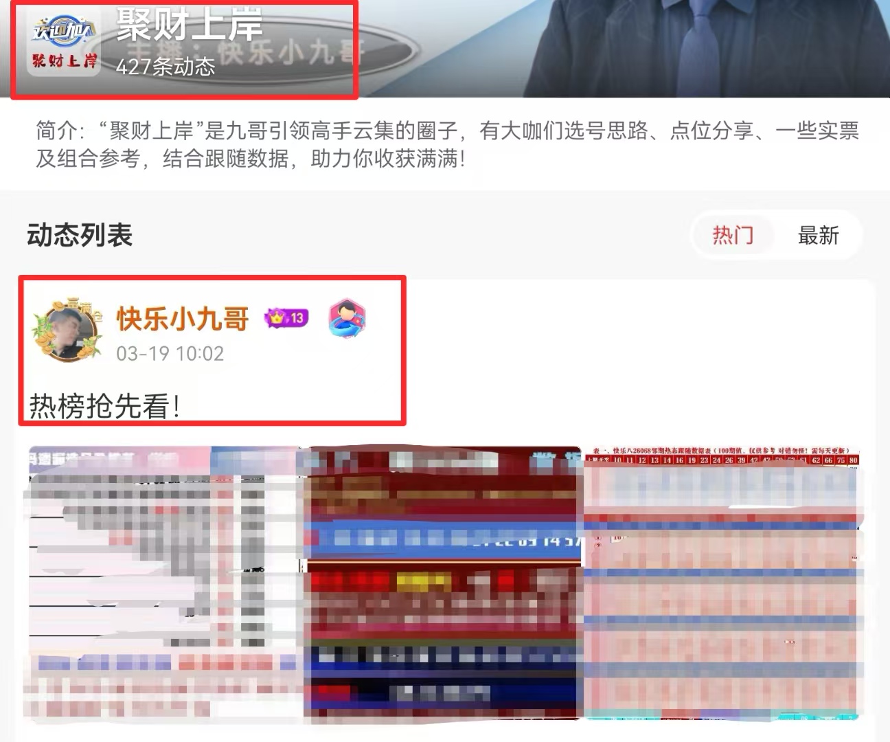 本期圈子跟随组合数据表、热榜、数据风险码、区间选号指标已经更新!请圈子的朋友查收!需要长期在圈子的朋友,建议直接周卡(可免费查看主播6次小车推荐)或直播间消费210元可申请入圈7天;