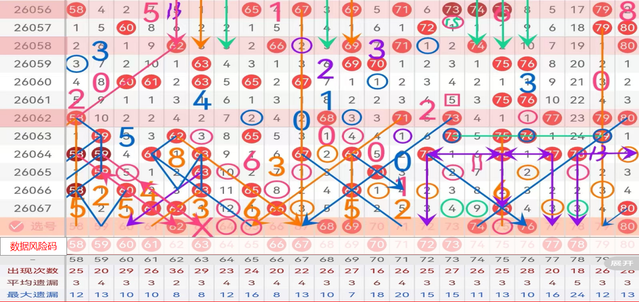 四区间上期开出了5个号码,均值开出;五斜连的62,高数据码,连号走重二择一推荐码,6字头中部的65,隔期跳空三斜连码,大遗漏分边码,基于本期的63形态规避码,所以65必防,不宜高倍胆码;6字头尾部的68 69是本期区间中部的重点码,可连号主防或主做,二择一推荐5期值的68;71小防;孤码75这里本期主推荐看分边 码74 76,鹅组住在推荐76,毕竟74没有遗漏值支持;尾部79 80二择一推荐79做防,80风险码;61 63 66 67 70 72 73 77 78 80风险码;