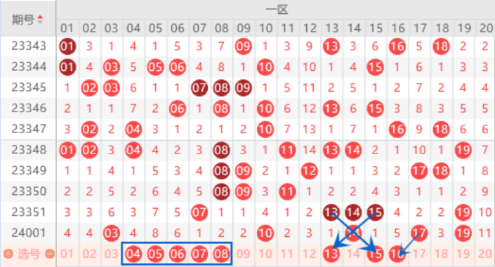 本期的04号数字我们注意一下出号情况,本期是有机会出号的。本期的05号数字是属于遗漏8期的号码,本期遗漏8期的号码有3个,本期我们要注意出一个号码的情况。本期的07号数字是属于空一对称号码,本期我们可以防守一下出号情况。上期开出了10号数字,本期我们注意一下把08号数字带出来的情况。本期的13 15号数字是属于交叉对称号码,本期是有机会出一个号码的。