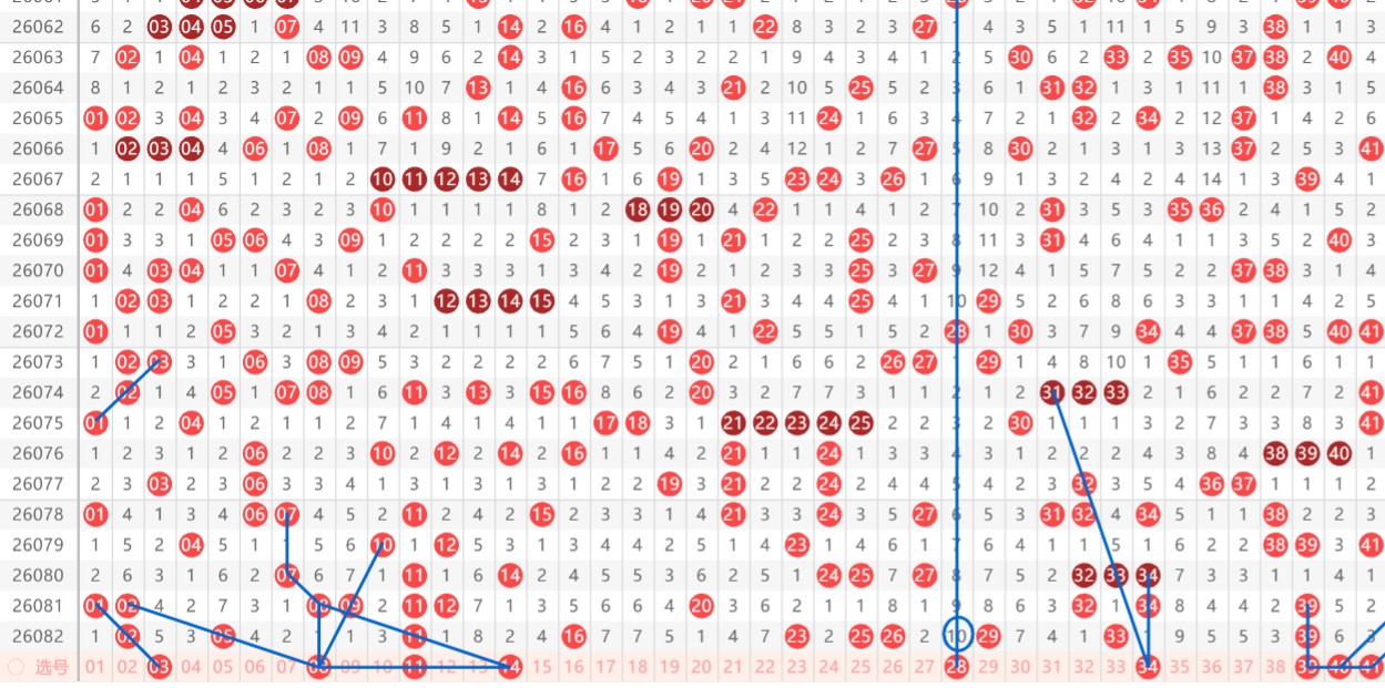 【第一区间1-40】上期开出10个号码。本期分析推荐:03-08-11-14-28-34-39-40八个号码。03斜连三期号码,上下对称形态;08是个大明号,集中同路、斜连形态;11四重为近期开出热形态把握;14同路号码,号段上考虑08-11-14同路三码趋势;28遗漏10期特别号码,接连两个遗漏10期,不妨作为防守号;34斜连号码,同属梅花号;推荐的39-40-41三连号码,在此将形成大“V”形态,它们各自有同路、斜连、等距对子等较强走势,39三重比较看好。区间推荐重点号码:一小区间03-08-11,二小区间39-40。