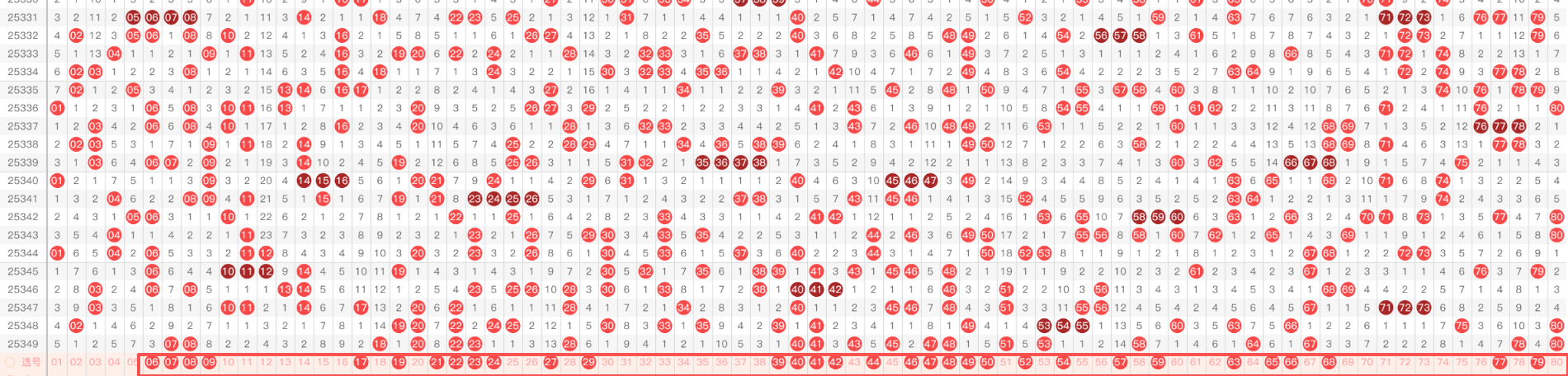 2.8分区分析法将80个号码分为8个区间(每区10个号码),通过历史数据统计,找出哪些区间出号频率较高。通常情况下,至少有12个区间会热出4个或以上的号码。
