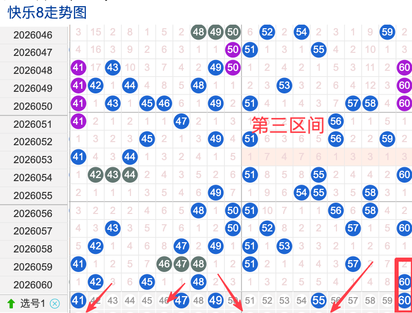 三区间开出了4个奖号(42.45.48.60)上期回顾三区开出4个奖号上期的三区间的奖号数量呈现一个递减的形态,4头回补3码,本期先来看号码41期出现频率相对来说还是很稳定。偶尔有时间隔期数也是很长,但是在近期的开奖中较热,号码49在近 30 期内出现次数相对较稳定的号码,近期的活跃度也是较热。号码53有一定的间歇性,通常间隔5-3期会出现一次,没有明显的连续出现态势,走势相对还不是很稳定,在整个第三区间的表现本期还是可以防守的。号码55走势相对近期较温冷,近期没有连续间隔落号的情况,活跃度近期处于温冷状态注意防守。