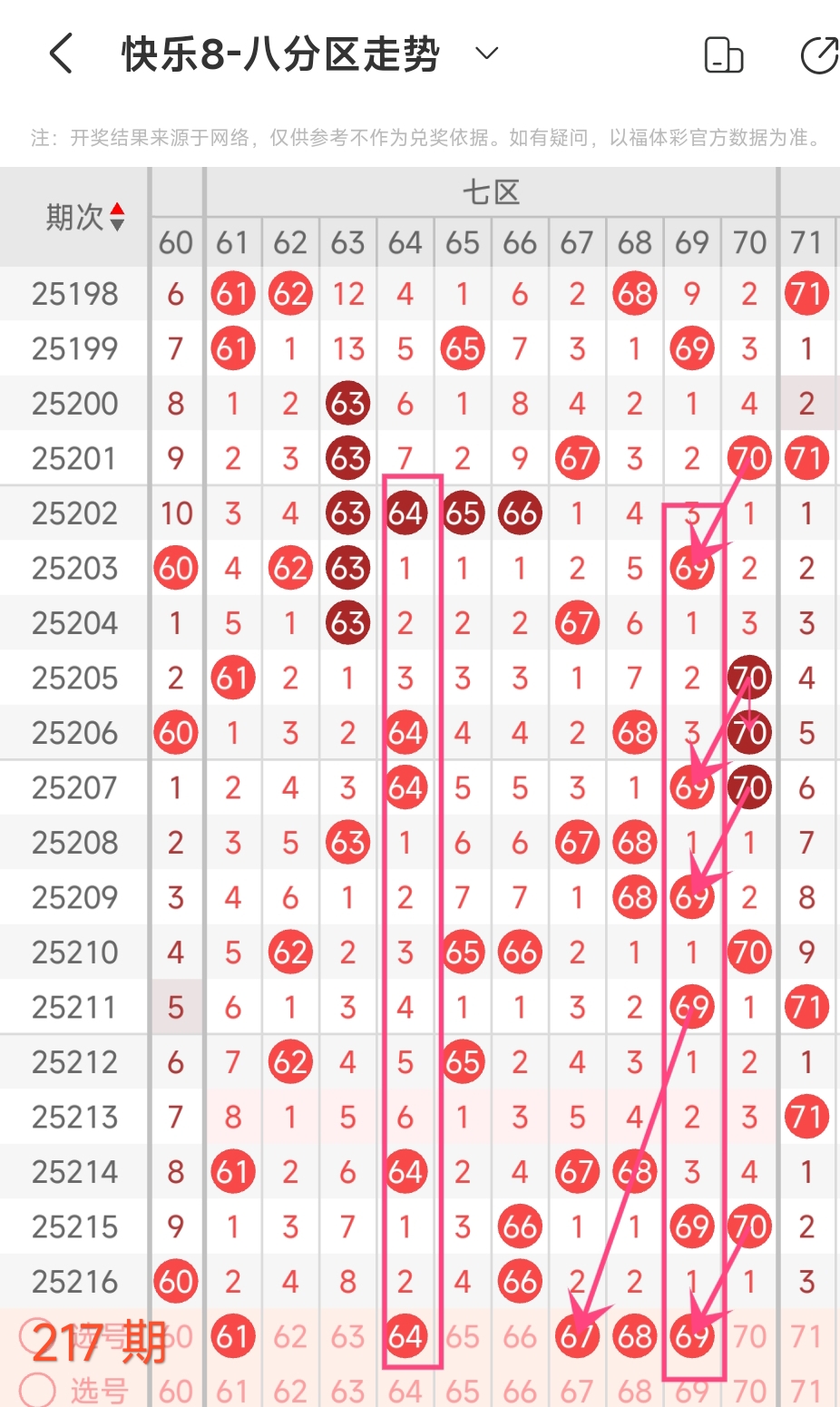 ③遗漏值为1-3分析:本期推荐数据为61 64 67 68 69等