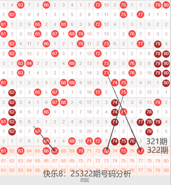 回顾25321期开奖号码:07 13 14 15 16 18 19 33 35 40 48 52 54 66 69 71 72 74 75 76 ,最近一段时间号码爆区几率特别高,目前已经连续多次出现爆区热开的情况,爆区之后基本上都是迅速回调,转换至其他区间继续暴热,大家若是能抓准区间,或许有很大的机会,但是号码的变盘规律是非常的快,很难把握,个人建议谨慎选择,不要 盲目的去操作~~
