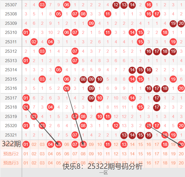 25322期,我们先看下一区间:01-20号码球,如下图: