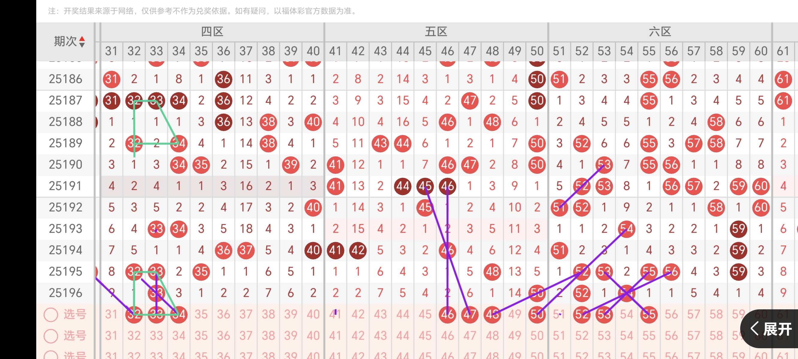1、连号:上期开2个或以上连续号码的连号数量是 3 组,判断本期连号的数量反弹升为 7 组,即连号要多考虑些;