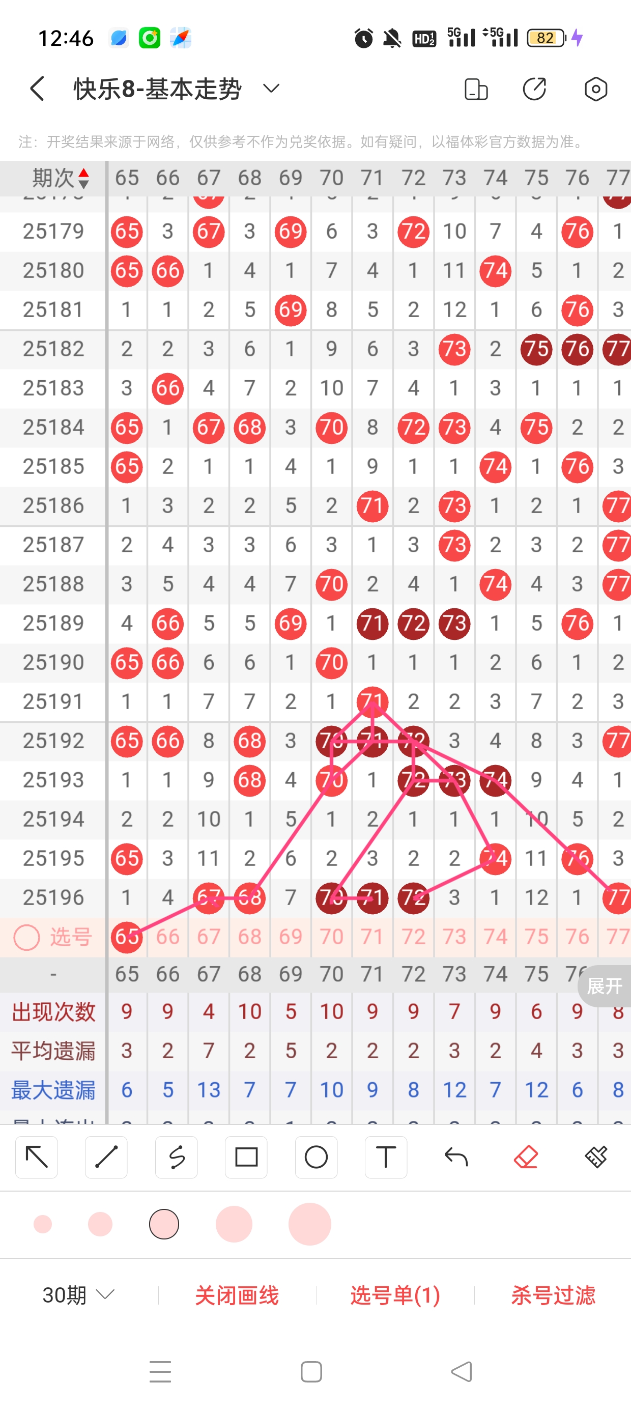 奇偶比9:11,和值805,区间比5:5:3:7,同尾比值:2:4:3:5,重号:12、52,连号:1、2、26、27、70、71、72。总结完毕,下面开始本期分析。