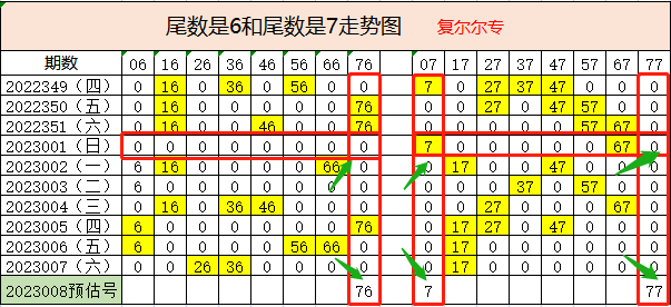 昨天开出头数7的五个号码,今天是否会重号呢,又或者会开出76?