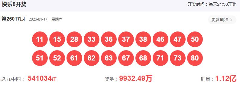 快乐8第2026017期开奖号码: