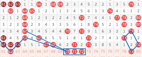 【第四区间61-80】:这个区间上期开出8个号码。本期推荐号码:62-70-71-72-79,70-71-72作为7字头三连号码重点防守,79为上期断码回补。四区间推荐重点号码:70-71-72。