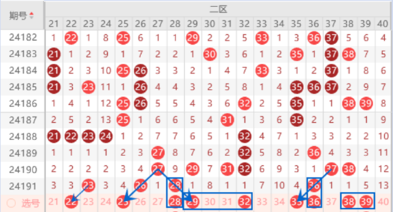 上期开出了23号数字,本期我们注意走分边的情况,重点关注一下22号数字的出号情况。本期的25 29号数字我们注意一下出一个号码的情况,重点关注一下25号数字的出号情况。本期的28 36号数字我们要注意一下出一个重号的情况,重点关注一下36号数字走重的情况。连号空一带号29 31 32号数字本期我们要注意落下号码的情况,重点关注一下31 32号数字出一个号码的情况。本期的38 39号数字我们重点关注一下,这里是有同出的可能的。