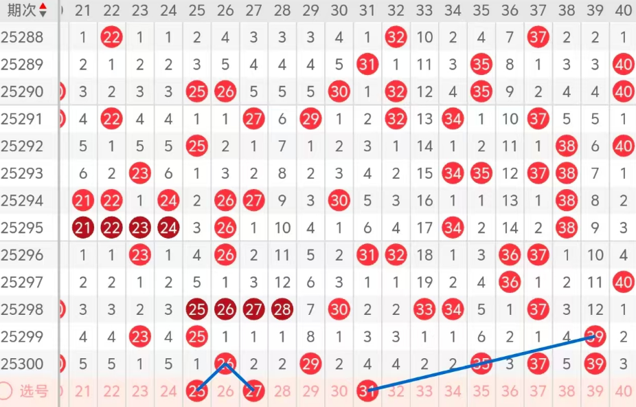 第二区间的走势分析:第二区间上期开出了五个号码球,主要的落号点位在二区间的后半区,走出了四奇一偶的形态,上期二区间主要的落号点位在隔一期上方热码的回补,重点在二区间的中间附近,整体走势处于温态,龙头位置处于走冷,根据这一走势规律,今天的二区间我们继续关注中间位置附近号码的落位,首先关注26的分边码25 27组合的落位,25走出了重码隔期回补的形态,27走出了上下对称的形态走势,今天重点关注,再看后半区的龙头31这个号码球的回补,走出了斜连码的形态,也是冷码的回补,这三个号码球建议大家可以打个三胆拖,参考为主!