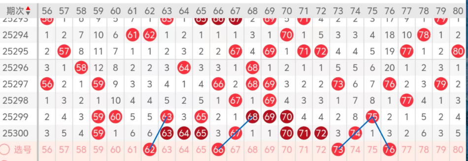 第四区间的走势分析:第四区间上期开出了八个号码球,主要的落号点位在四区间的中间附近,走出四奇四偶了的形态,四区间上期直接暴区,落下两个三连码,处于走热的趋势,今天的四区间应该有所降温,注意边码的落位,根据这一走势规律,今天的四区间我们主看前半区的边码62 66这两个号码球的回补,以及后半区73 76边码的落位,重点关注这四个边码,大约有2码落下,注意66 73组合的落位,都走出了三斜连的走势形态,这四个号码球建议大家打个四码复三比较稳妥,参考为主!