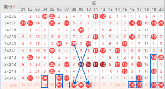 上期开出了连号空一带号04 06 07号数字,本期我们注意一下出一个重号的情况,本期的04号数字出重的机会是有的,可以做一下防守,本期的06号数字可以重点一下,本期出重的机会比较大,如果本期的06号数字出重了,那么本期的07号数字出重的机会就比较小,那么本期的17号数字出号就比较大了,我们要注意一下。四连号09 10 11 12号数字本期我们注意落下号码的情况,毕竟有两期没有落号了,本期重点关注一下09 10号数字出号情况,其中的10号数字可以重点关注一下。