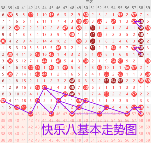 我们来看下三区的基本走势情况,上期开出了五枚开奖号码,本期预计开出3-4枚开奖号码,首先我们来看42的双线三斜连走势,45的菱形号形态,48的三斜连走势形态,42 45 48三同路建议三选一或者三选二。57 58的二连开出,优先考虑形态复制的58走重,或者直接一重一分边双码形态 56 58.