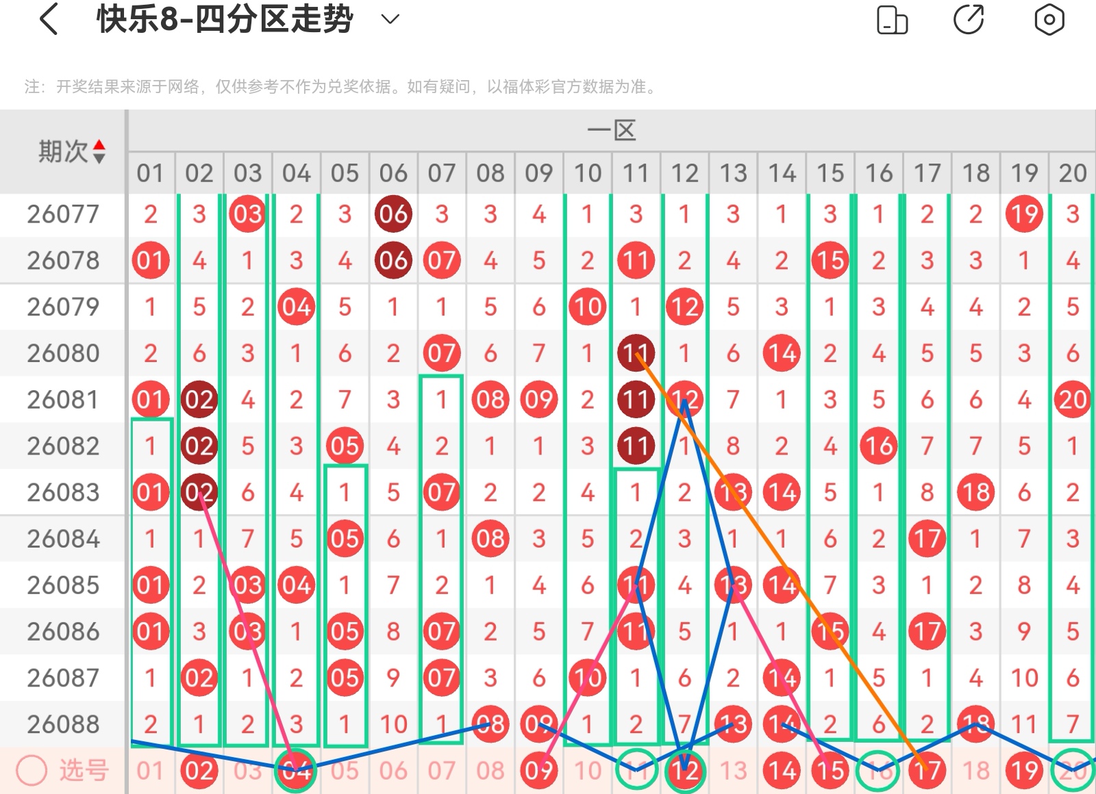 下面我为大家分享一下快乐八第26089基本走势分析: