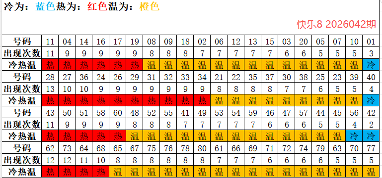 图:快乐8冷热温号分布热力图示例