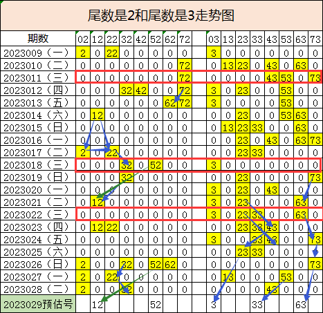 尾数2-3区间的走势,同周期开奖3次,尾数2空挡一期没有开出号码,