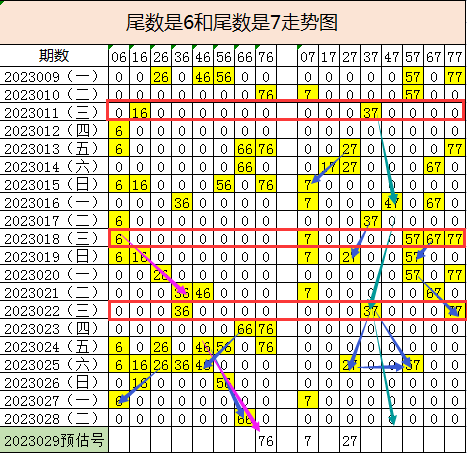 尾数7没有大走势,小走势也不多,但是在近期有一个关联走势,