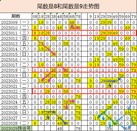 尾数8三个号,尾数9三个号,近20期的尾数开出个数慢慢的