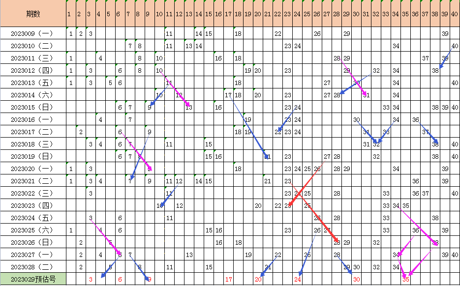 1-40区间的大走势可以看到更多的斜开走势,前几期没有具体分析,