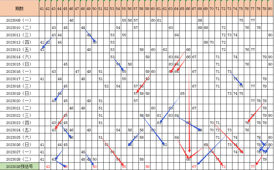 41-80区间的走势更为明显,很多四连号,五连号走势,