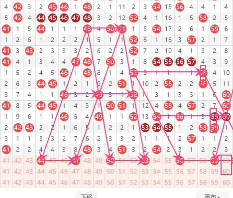 三区分析:【41-60】(走势图标注号码非小黄车大底,请谨慎参考,具体思路