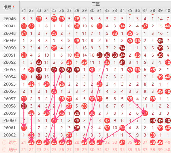 二区间注意打底号21.23.24.25.26.29.30.35.36.中关注2-3码开出机会,