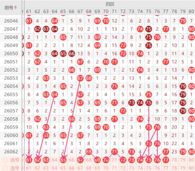 .那么四区间关注的打底号是61.62.63.67.68.69.70.71.72.73.75.76.中参考3-4码开出机会