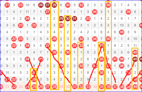 第二区间号码21-40,二区要完犊子了,大家看看从走势上二区发生了什么。密密麻麻全是号码,可是真的是这样吗?你还别说,在经历了两期的较冷号码之后,昨天开出了小连号,关键在于昨天本区间的龙头和凤尾全部出现。这是不是预示着一个好的信号。