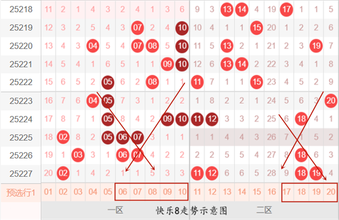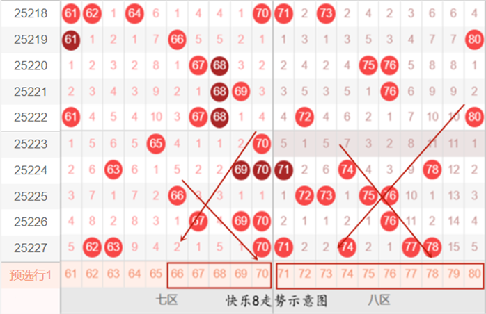 快乐8第25228期:冷热区间判断及号码分布推荐分析