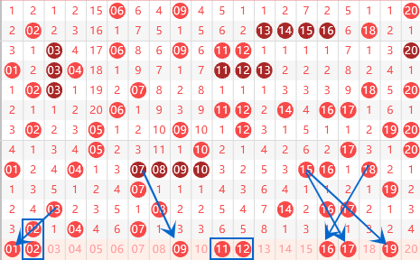 上期开出了02 04号数字,本期我们注意一下走重的情况,01号数字我们也是可以关注一下,毕竟上期的80号数字出来了。上期的09号数字没能出来,本期我们在防守一期看看。本期的11 12号数字我们可以关注一下,这里有机会出一个号码的。连号空一带号14 16 17上期没能出重号,那么本期落下一个号码的情况就有了,我们要重点考虑一下16 17的落号情况,可以在这里定一胆码的。本期的19号数字是属于空二对称,本期的空二对称有好几个,我们可以重点考虑一下出2个号码的情况。