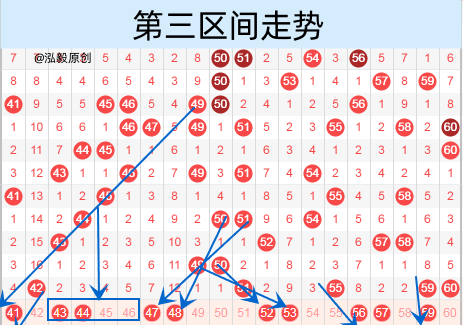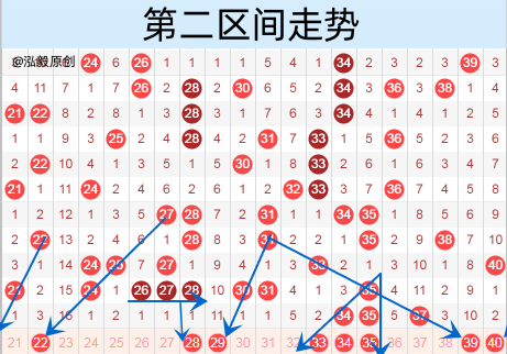 该区间上期的三连号26 27 28没能落重号下来,那么本期我们可以防守一下落号的可能了,这里出现回补的情况比较大,上期开出连号34 35号,那么本期我们就要防守一下33 34 35出现两码的情况了,机会还是非常大的。39号是属于遗漏10期冷号,本期遗漏10期的号码还有78号,这两个号码应该会开出一个号码来,我们需要注意一下。