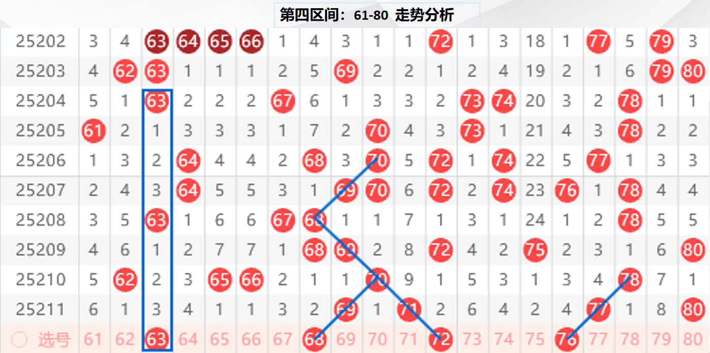 四区分析:【61-80】(走势图标注号码非小黄车大底,请谨慎参考,具体思路将在直播间分享讨论)