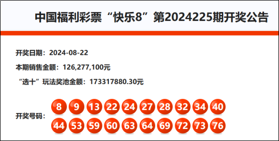 首先我们先来回顾快乐8第2024225期开奖号码: