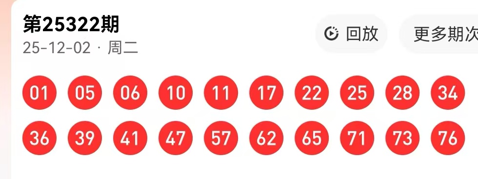 快乐8第25322期开奖号码:
