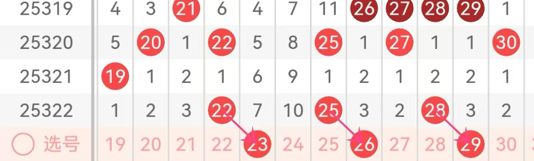21-30区域:近三期出号数量为4.0.3,本期该区域推荐关注号码:23.26.29,该区域需要预防冷码24,形成24.26组合