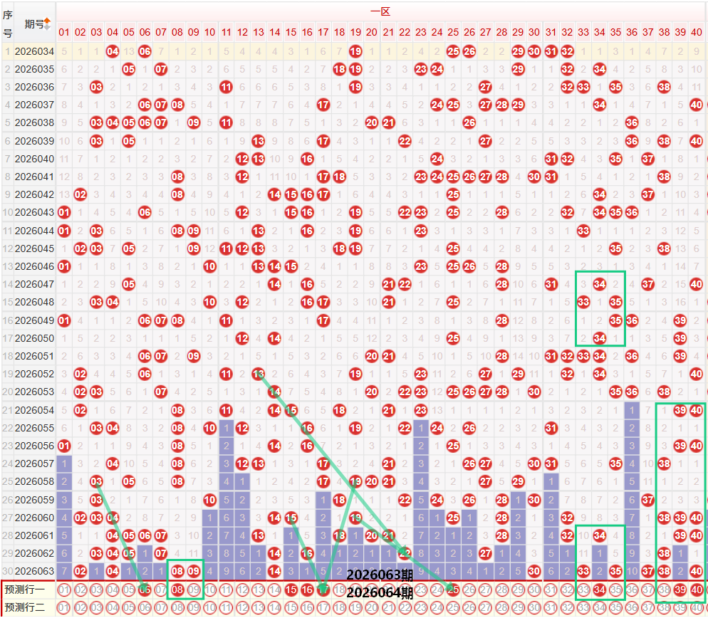 如图所示:在本期小数区的选号中,注意在上期的走势中一区间开出了5枚中奖号码,目前已经保持了连续四期的均值及以上走势,本期考虑一区间的落号数量开出第五期的均值及以上的走势,在上期的开奖结果中密集点位 依旧保持着连续走势开出了外扩形态的02 08,以及08 09的二连走势,04开出了重号四期的走势,本期注意上期开出02 04的位置注意06的单码走势,或者是考虑06 08的双码走势,以及01 02的双码走势,在上期开出02 08的下方注意重号走势,1字头号码上期的落号以及围绕在14的位置落号,考虑上方的斜线连续走势,在上期出现了断号走势,因此要注意22的遗漏一期走势,或着是考虑从14的位置重新开出走斜线的延续走势,或这是考虑斜线转直线的多码连号走势,二区间上期开出了6枚中奖号码,落号数量保持着集中落号,区间落号比值为1/5,在上期的开奖结果中3字头开出了33 35 37的奇数三连号走势,本期注意34 36的夹号二选一,个人较为看好34的单码走势,尾部位置上期开出了38 40的偶数二连走势,本期注意向前延续34 36或者是考虑42 44的左右偶数延续走势,另外这里要注意39 40在近期的走势中相对较热,因此上期开出40之后,本期注意40的重号,以及39 40的二连走势再次开出。