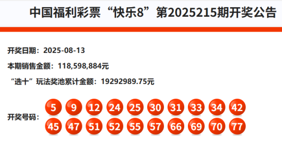 首先我们来回顾快乐8第2025215期开奖号码: