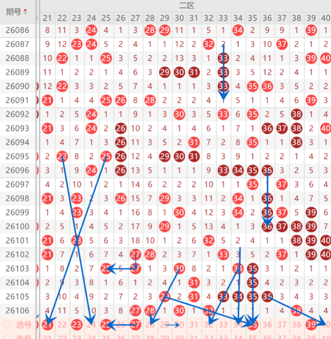 二区在近期区间的走势上分析,而且整个区间现在是一个温热形态,上期二区间开出了5码,而且整个区间上期开出的形态是假四连和重码回补走势,上期小妹在文章中布局到了2码,那么本期二区间重点关注的形态是重码走势,隔期回补,空位回补,那么本期首先注意重码走势上的27.32.38.中选择1-2码走重机会,而隔期回补上注意33.34.35中参考一码回补机会,至于空位回补上防守21.23.25.中选择一码回补机会,上期重点关注在空位回补上布局到了1码开出,那么本期重点关注在对称形态上布局一码订胆机会,如图所示.