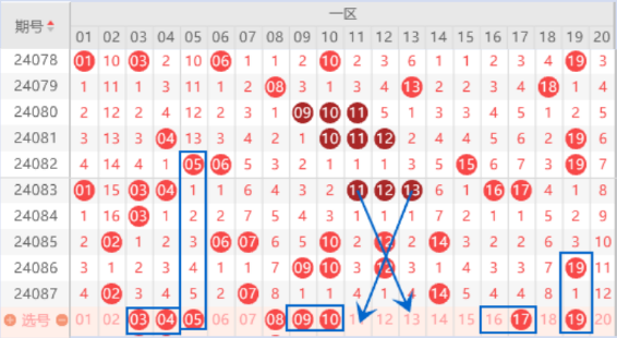 下图为01-20号数字区间走势分析图: