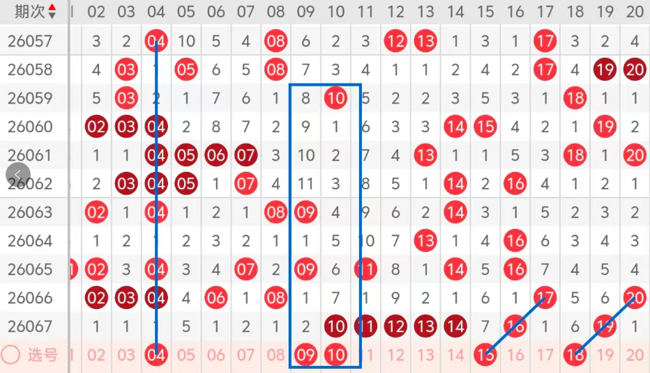 第一区间的走势分析:第一区间上期开出了七个号码球,主要的落号点位在一区间的后半区,走出了三奇四偶的形态走势,上期一区间的前半区落下了一个号码球,后半区落下了六个号码球,整个一区间处于走热的趋势,根据一区间的走势规律,今天的一区间我们主看前半区热码04的回补,再看凤尾处09 10姊妹对号码的组合,最后关注15 18斜连码的落位,注意09 18的组合,这五个号球建议大家打个五码复四,或者打个五码复三比较稳妥,参考为主!