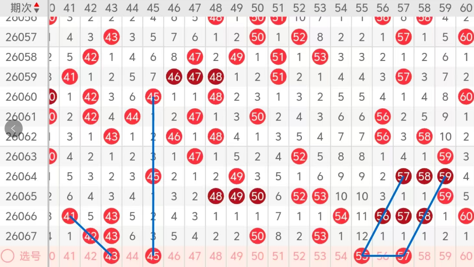 第三区间的走势分析:第三区间上期开出了四个号码球,主要的落号点位在三区间的前后半区,走出了两奇两偶的形态走势,上期三区间的前半区落下了两个号码球,后半区落下了两个号码球,整个三区间处于走冷的趋势,根据三区间的走势规律,今天的三区间我们主看前半区43 45的组合,43走出三重码,45走出对称的形态,再看后半区55 57的组合,走出了斜连码的走势,这四个号球建议大家打个四胆拖,或者打个四码复三比较稳妥,参考为主!