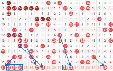 本期的22 23我们要注意出一个号码的情况,连号斜连下来,这里应该可以定一个胆码出来的。上期的27号数字没能出来,本期我们可以防守一下本期27 28同出的情况。本期的33号数字我们可以重点考虑一下,虽然有点热,但是出号机会很大。本期的35 36不看好落重号,建议看好的也是做拖码就行了,不能主做。