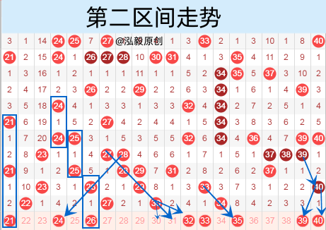 下图为21-40号数字区间走势分析图:
